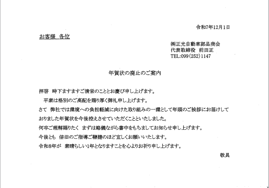 正光自動車部品商会は1977年の創業以来、鹿児島県を中心に営業している自動車部品商です。「カーオーナーの安心、安全」をモットーに、お客様のニーズに応えられる製品の提供に努めてまいりました。