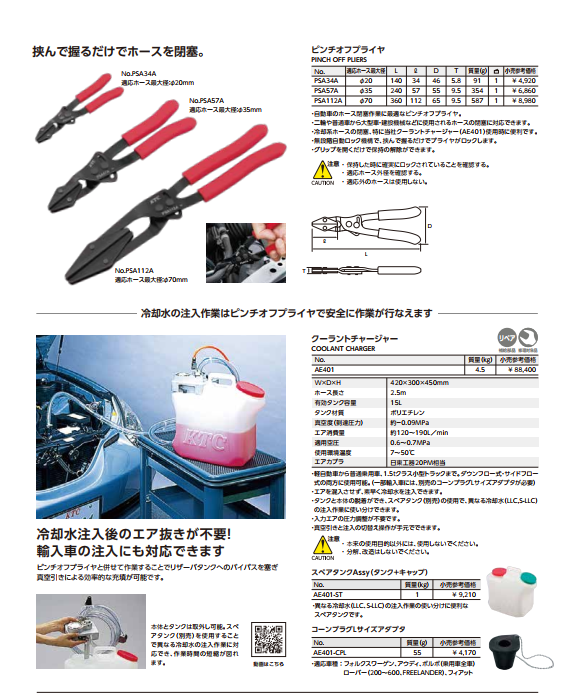 冷却系ホースの閉塞: 特にKTC製クーラントチャージャー使用時など、クーラント交換時の液漏れを防止。